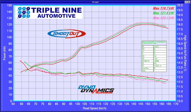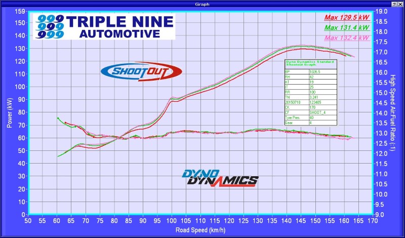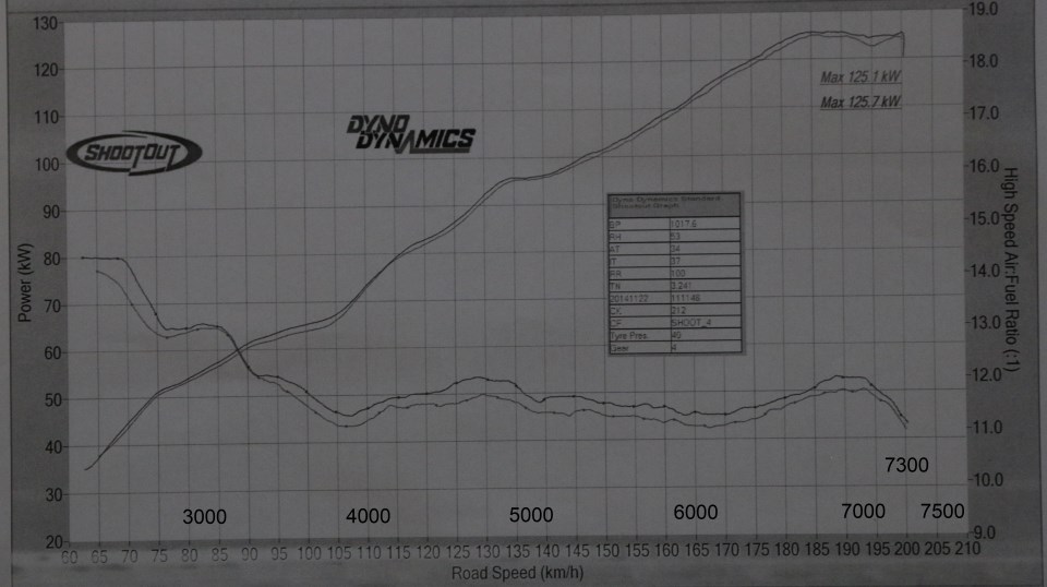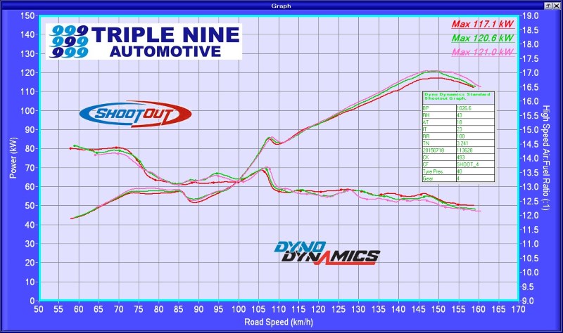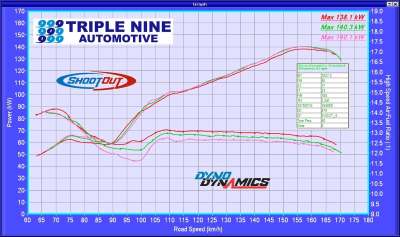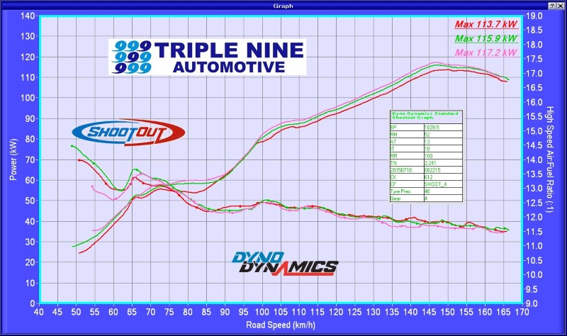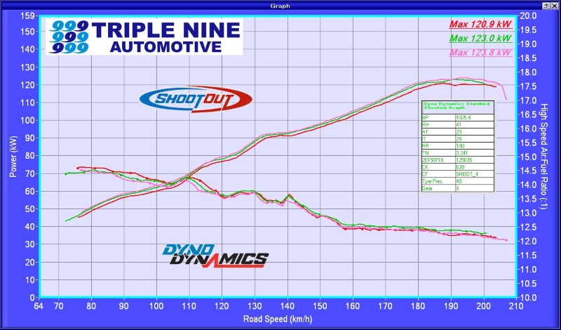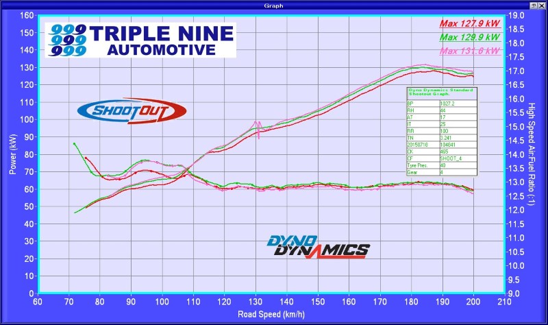 All graphs from the same dyno, same day (2015-07-18), same 20C intake air temp.