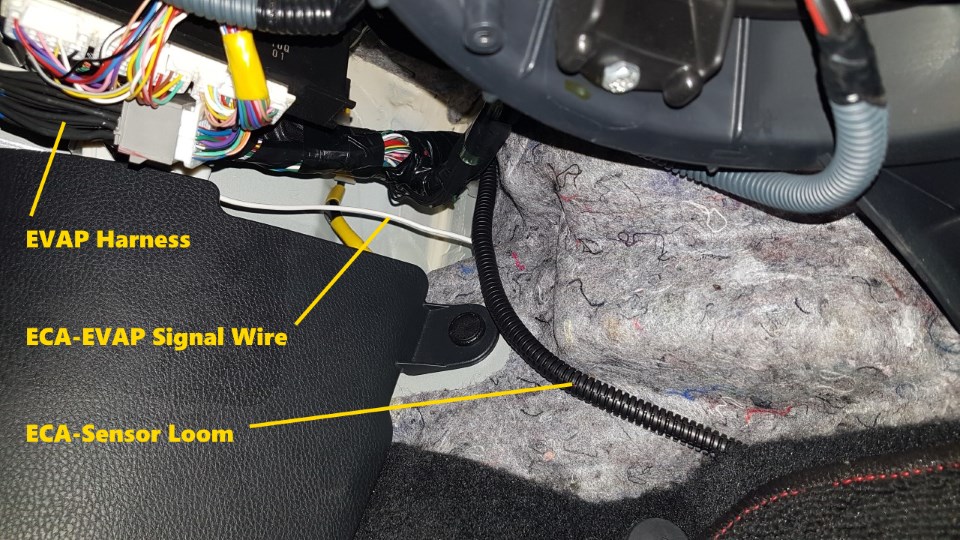 Cut a hole/slot in the firewall grommet above the engine loom for the sensor to ECA loom.